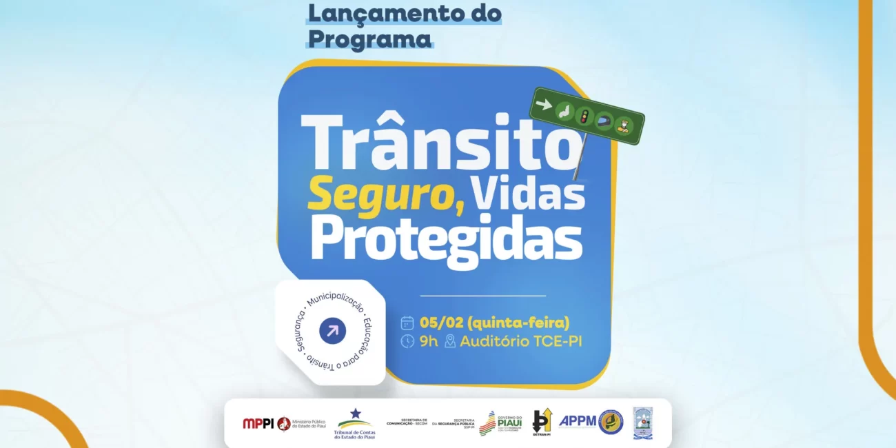 O Ministério Público do Estado do Piauí (MPPI) lançará na próxima quinta-feira (05) o Programa “Trânsito Seguro, Vidas Protegidas”, iniciativa voltada ao fortalecimento das políticas públicas de segurança viária e à redução dos índices de acidentes e mortes no trânsito no estado. O evento acontecerá no auditório do Tribunal de Contas do Estado do Piauí (TCE-PI), a partir das 9h, e reunirá autoridades e representantes de instituições parceiras.